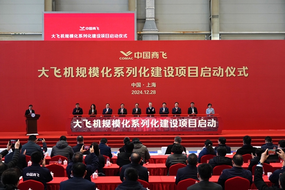 2024年12月28日,中國商飛公司在總裝制造中心浦東基地舉行大飛機規?;盗谢ㄔO項目啟動(dòng)活動(dòng)。隨著(zhù)C919即將進(jìn)入規?;\營(yíng)新階段,中國商飛公司在加快自身能力建設的同時(shí),將進(jìn)一步加強與產(chǎn)業(yè)鏈上下游企業(yè)合作,依托大飛機項目促進(jìn)更多航空企業(yè)和資源在滬集聚,為上海經(jīng)濟結構轉型和經(jīng)濟社會(huì )發(fā)展作出貢獻。(圖/徐炳南)